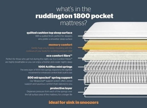 The Silentnight Ruddington Combination Mattress offers advanced comfort and reliable full-body support, designed to promote a cooler, healthier, and more restful night’s sleep. As part of Silentnight’s premium Affinity range, this mattress features a zoned Mirapocket spring system, ActiFlex comfort technology, and a new-generation memory foam layer that provides exceptional pressure relief without that "sinking" feeling.